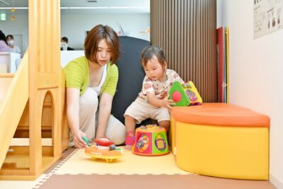 みらいあさひ内にあるおひさまテラスのプレイングパブリックは屋内だけど、思いっきり走り回れるよ!