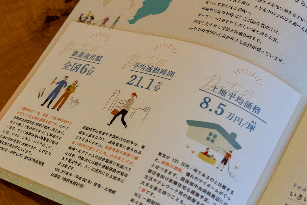 旭市役所のほか、市内各所や移住イベントなどで配布されます。